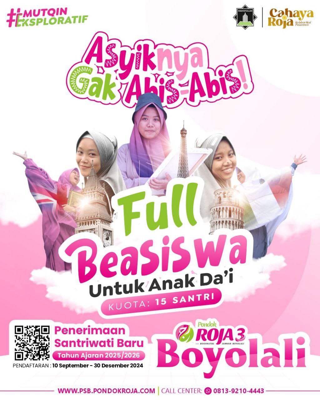INFORMASI PENDAFTARAN SANTRI BARU ISKA INTERNATIONAL QUR’ANIC BOARDING SCHOOL SUKOHARJO TAHUN AJARAN 2025-2026 KUOTA : 28 SANTRI PUTRA Informasi Pendaftaran : 081646991496 (Admin PPTQ ISKA)…